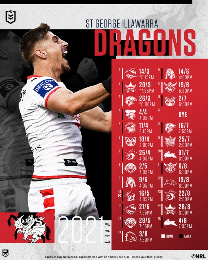 Here is all you need to know about the St George Illawarra Dragons' 2021 Telstra Premiership draw.