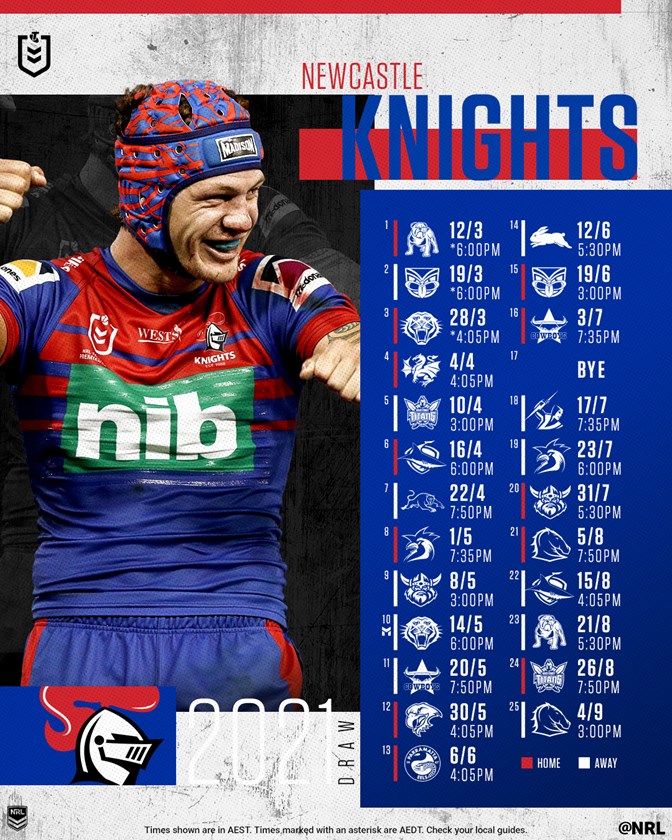 Here is all you need to know about the Newcastle Knights' 2021 Telstra Premiership draw.