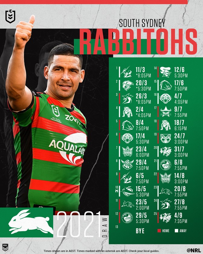 Here is all you need to know about the South Sydney Rabbitohs' 2021 Telstra Premiership draw.