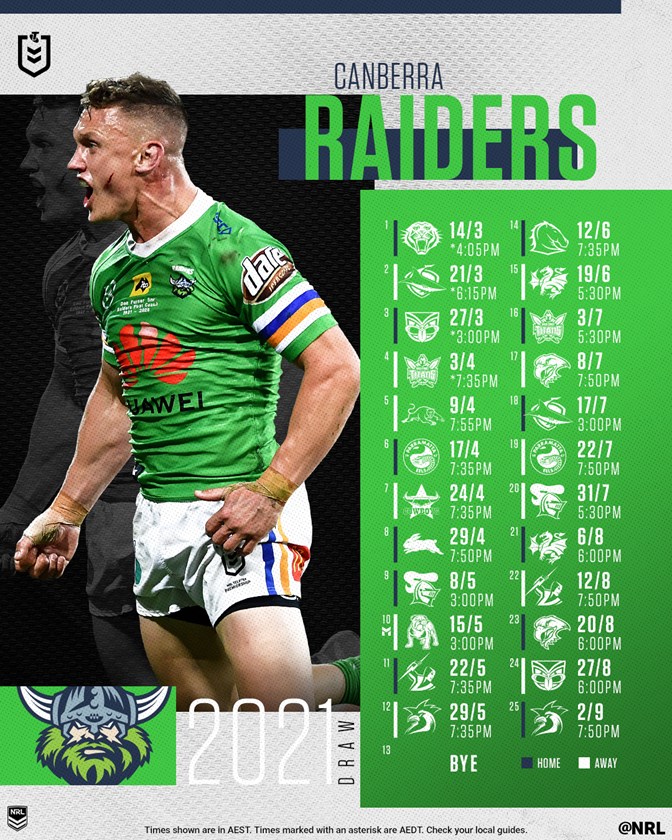 Here is all you need to know about the Canberra Raiders' 2021 Telstra Premiership draw.