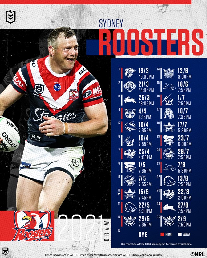 Here is all you need to know about the Sydney Roosters' 2021 Telstra Premiership draw.