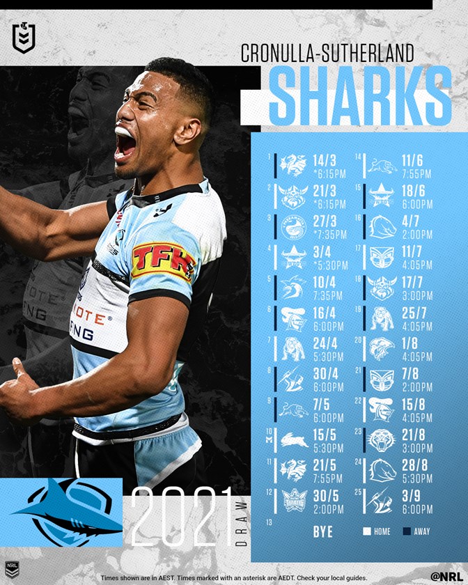 Here is all you need to know about the Cronulla Sharks' 2021 Telstra Premiership draw.