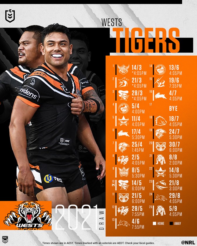 Here is all you need to know about the Wests Tigers' 2021 Telstra Premiership draw.