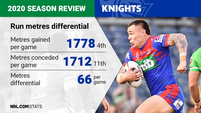 The Knights had been poor in the yardage department since their last finals appearance in 2013 but returned respectable numbers in 2020 on the back of the six-again rule and a maturing foward pack.