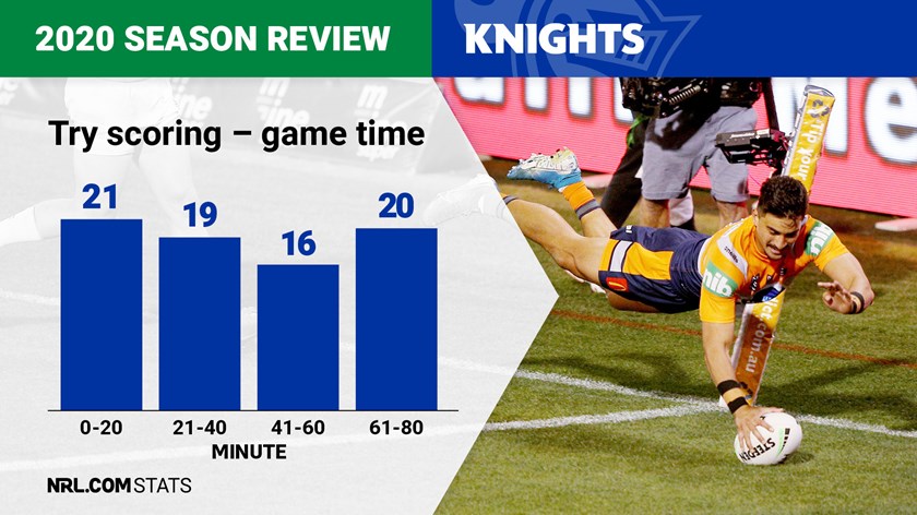 The Knights could pile on tries early and towards the end of games but weren't as effective in the 20-minute periods before and after half-time.