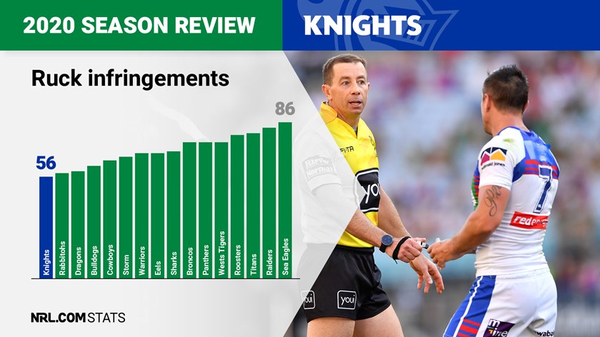 While the Knights didn't necessarily stand out and take true advantage of six-again plays in attack, they finished the season as the most disciplined side in the competition at conceding the least amount of ruck infringements.