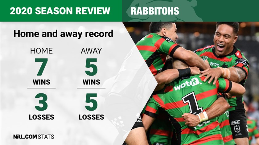 They were solid on the road, managing to finish with an even record. South Sydney's biggest losing margin was 28-12 against the Roosters, away at Bankwest, when the season resumed in round three.
