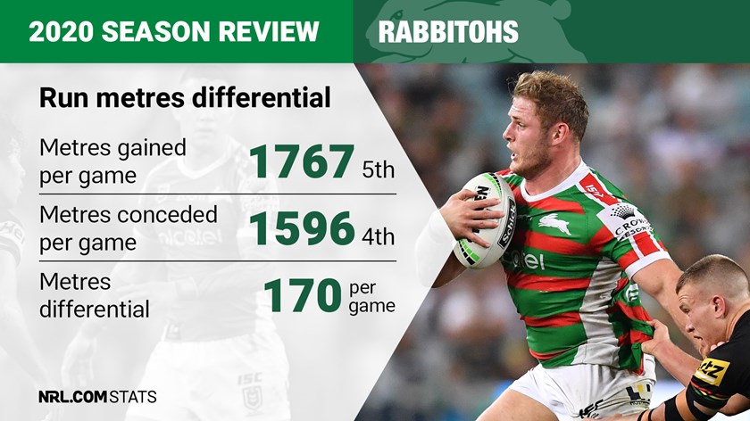 Those results gave South Sydney the fifth-best run metre differential of 170.4, streets ahead of Newcastle (65.7) in sixth.