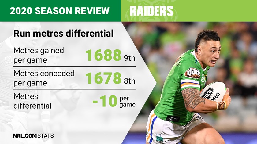 Ranking the 16 NRL clubs' 2020 performances by run metre differential yields a very similar order to the year's Telstra Premiership ladder – with the Raiders being the biggest outlier.