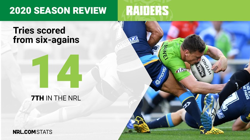 The Raiders scored four more tries in the set after earning a ruck infringement than what they conceded in the set after giving one away – not bad considering they were the second-most penalised team on that front, giving away 83 ruck infringements behind only Manly (86).