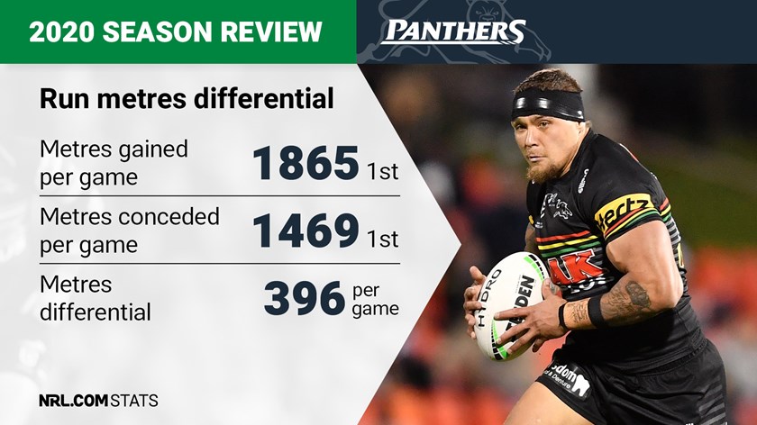 The Panthers dominated most statistics this season, and none more so than the battle for territory with no team making more metres or conceding fewer across the regular season. That meant they made a whopping 396 metres more than their opponents on average every game, with plenty of opportunities to attack from within striking distance of the tryline and relatively few for rival teams.