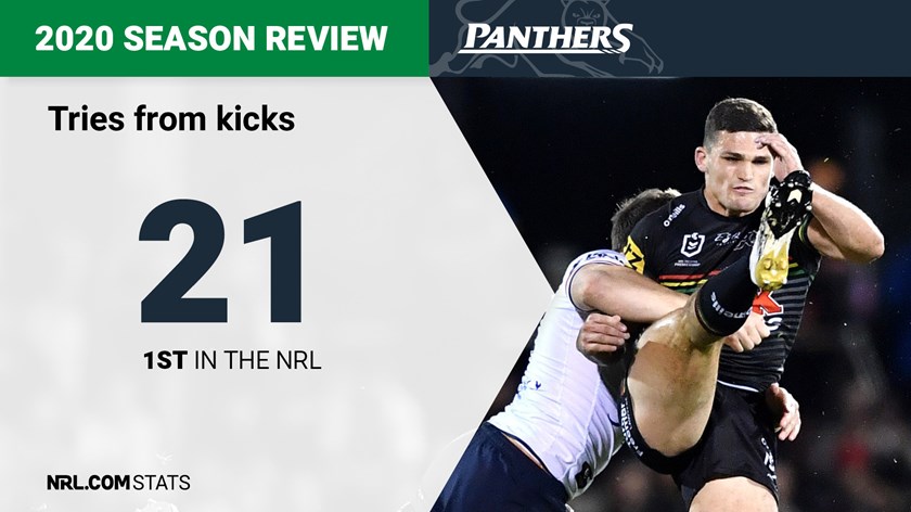 Again Nathan Cleary's right boot came in handy here but so too did the playmaking skills of Jarome Luai, with both Panthers halves providing eight try assists from kicks to rank equal second in the league (behind Cronulla's Shaun Johnson).