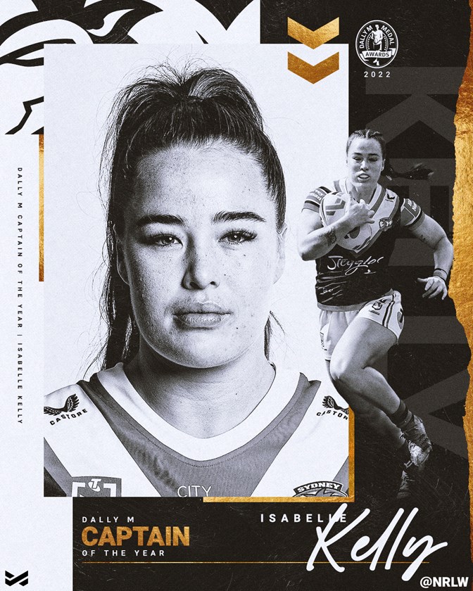 Sydney Roosters centre Isabelle Kelly has been named the 2022 NRLW Dally M Captain of the Year in her first season of leading the club.