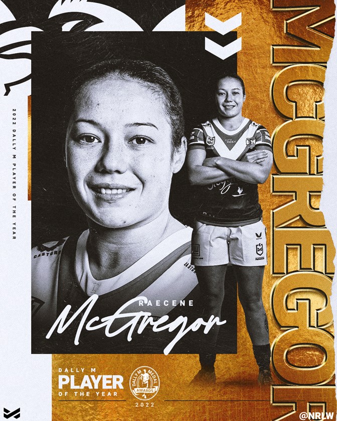 Sydney Roosters halfback Raecene McGregor has been crowned the 2022 NRLW Dally M Medal winner following a dominant season for the Tricolours.