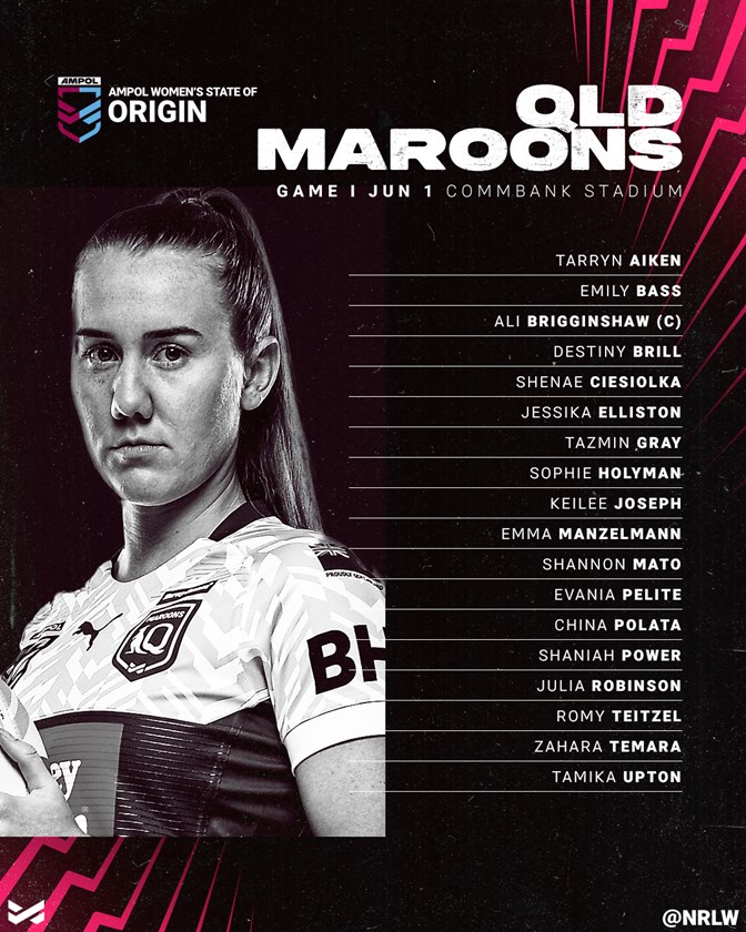 Broncos captain Ali Brigginshaw will lead the new-look Maroons squad which includes Jillaroos stars Tarryn Aiken, Shenae Ciesiolka, Evania Pelite, Julia Robinson, Shannon Mato and Joseph, who are fresh off a World Cup win.