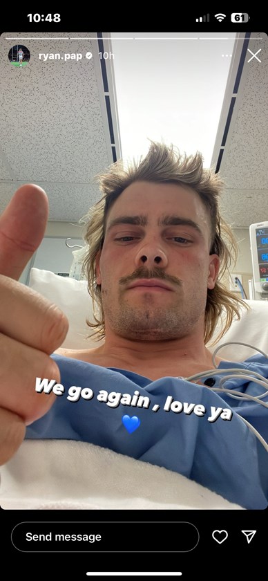 Papenhuyzen took to Instagram with a message for the Storm fans on Saturday, posting simpy 'We go again, love ya'.