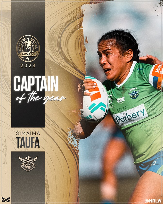 Canberra's Simaima Taufa has been named the NRLW Dally M Captain of the Year.