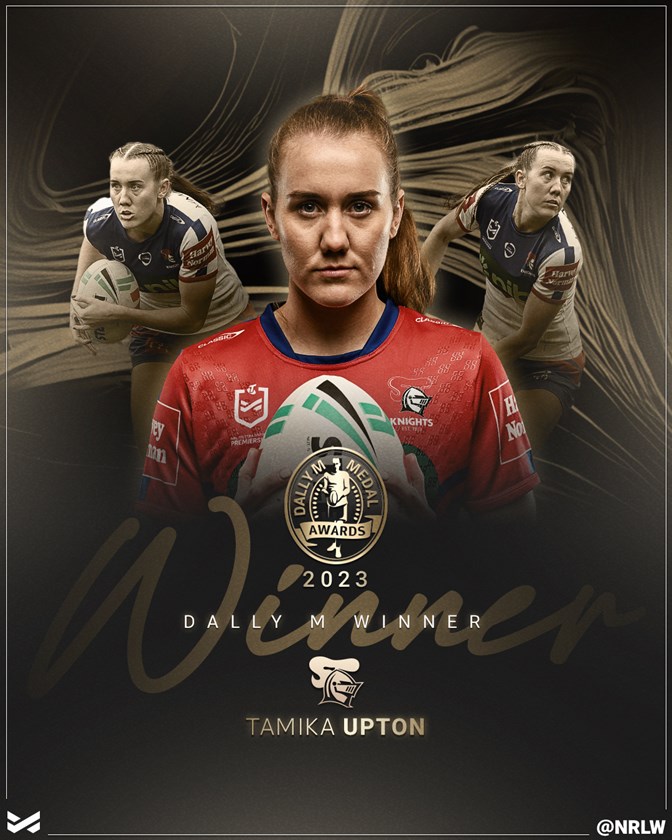 Newcastle's gun fullback Tamika Upton has been crowned the NRLW Dally M Medal winner for 2023 as she heads into Sunday's decider against the Titans looking to cap a sizzling season with a premiership.