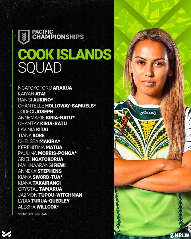 Boom NRLW rookie Chantay Kiria-Ratu, experienced back Kiana Takairangi and powerful forward Kerehitina Matua headline the Cook Islands team to take part in the Pacific Championships this year.