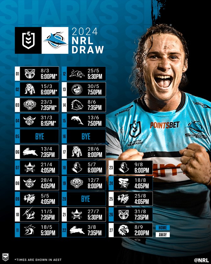 On paper, the Sharks have the most favourable draw in the competition, facing the Panthers, Broncos and Storm on only one occasion each this season. They tackle the Roosters at Magic Round, the Eels and Sea Eagles away, and they get the Knights and Dolphins on home soil at Cronulla.