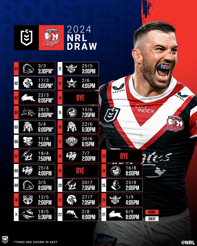 What starts in Vegas ends at Accor Stadium against their bitter cross-town rivals in 2024 as the Roosters look to make the finals for the seventh year in a row.