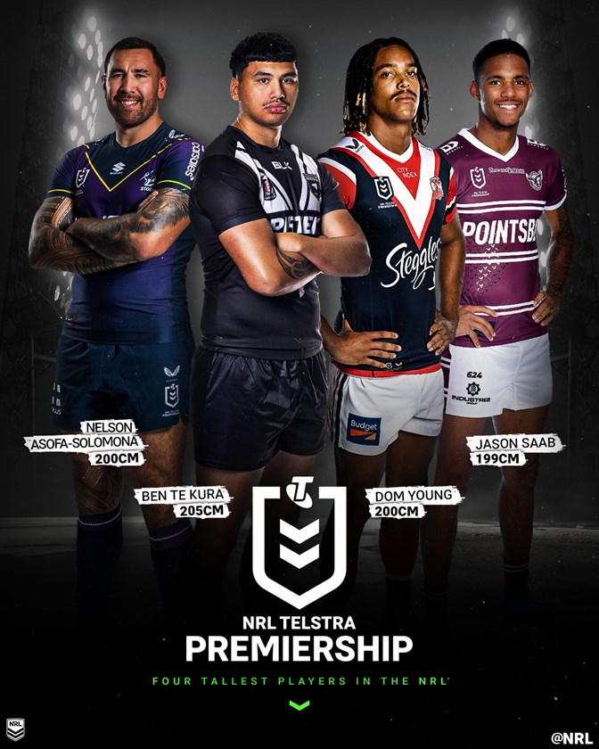 Standing at 205cm, Te Kura is comfortably the tallest player in the NRL this season, ahead of Asofa-Solomona and Roosters wing Dominic Young who each measure in at 200cm.