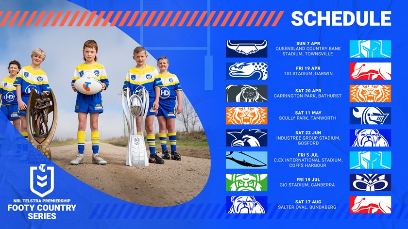 In each location, the NRL Telstra Premiership Footy Country Series will highlight and strengthen the deep bonds between country rugby league and the elite game. Community activities at local clubs and schools will feature junior rugby league clinics, player and trophy appearances and donating Telstra Footy Packs including hit shields, tackling bags and other football equipment.