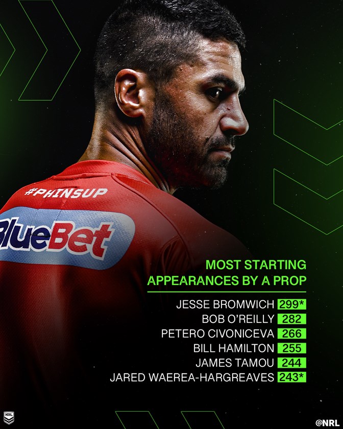 Since then he's managed to do it more than any other front-rower in the history game, with Friday night's encounter against the Eels at TIO Stadium in Darwin marking his 300th starting appearance at prop in the NRL.