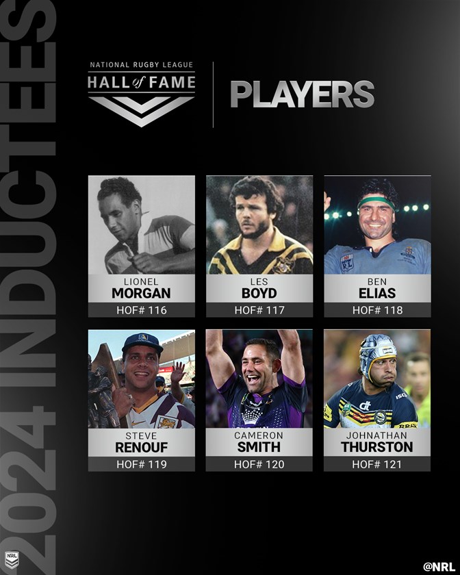 As a result, the 2024 Class will feature some of the most iconic players across multiple eras; Lionel Morgan was the first Indigenous Australian to represent Australia in any major code, Cameron Smith holds the record for most NRL matches by an individual (430), Sam Burgess becomes the first England representative to be inducted into the NRL Hall of Fame.