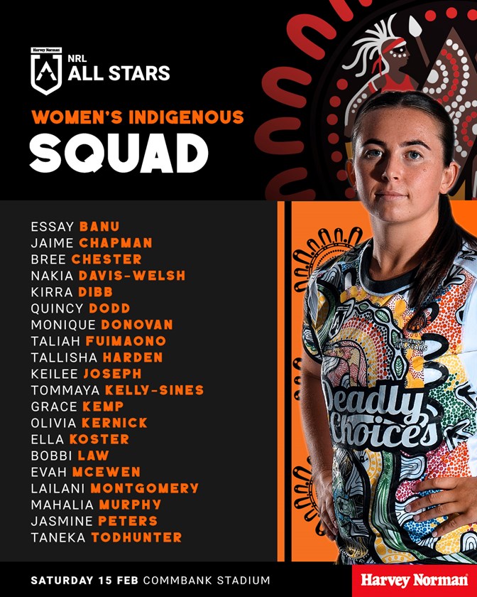Mahalia Murphy, Olivia Kernick and Keilee Joseph are other Jillaroos players in the Indigenous All Stars team, while Shannon Mato will play for the Māori side.