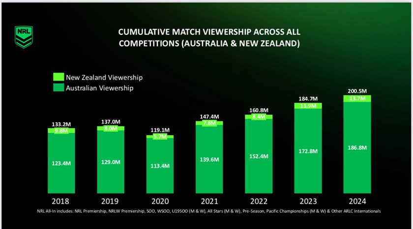 The Pacific Championships, played at the end of last season, attracted total audiences of 6.3m – a 42.5% increase on the 2023 tournament, while the entry of a Papua New Guinea team into the NRL in 2028 was confirmed.
