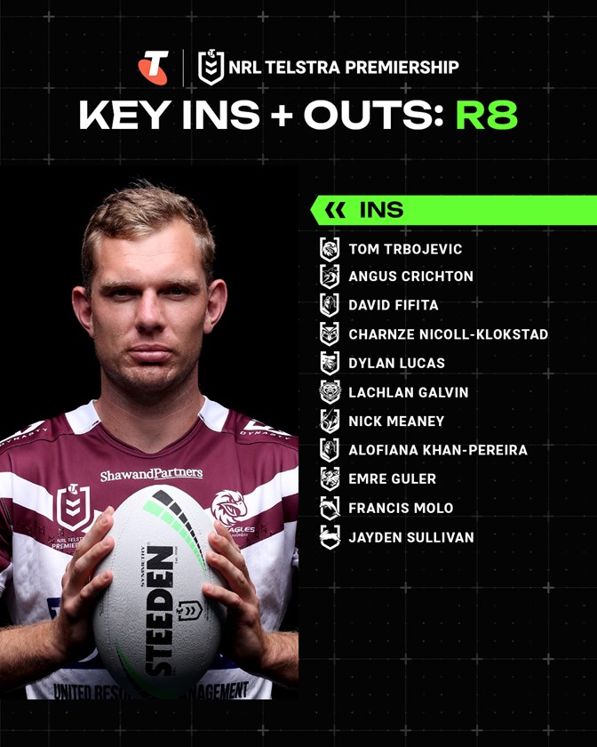 - Tom Trbojevic's return is offset by the loss of brother Jake Trbojevic, who is subject to the NRL's concussion protocols. Jazz Tevaga shifts to lock in his place, with Jake Simpkin to start at hooker.