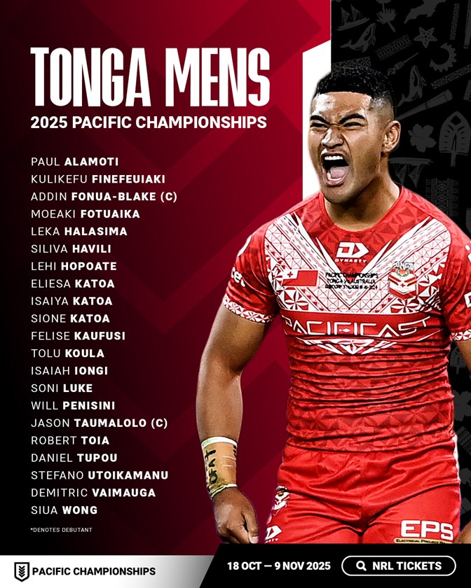 The team will have a pre-tournament camp in Tonga before facing Samoa at Brisbane’s Suncorp Stadium on Sunday October 26.