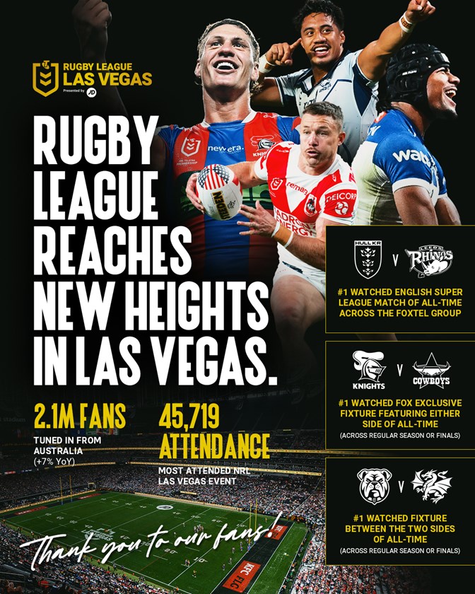 The NRL's global expansion continues to gather pace after another record-breaking season opener took the game to new heights in Las Vegas.