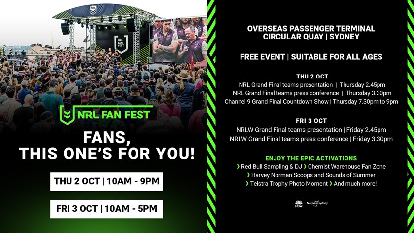 Celebrate the 2025 NRL season with the ultimate two-day Rugby League Fan Festival at the Overseas Passenger Terminal in Circular Quay, Sydney.